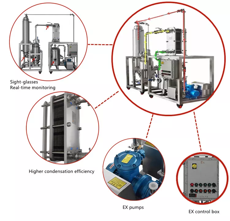 Sukichem falling film evaporator is an industrial device to concentrate solutions, especially with heat sensitive components. For example, it can recovery 97.5% ethanol. (1 set FFE-100L ≈5 sets 50L rotary evaporator)